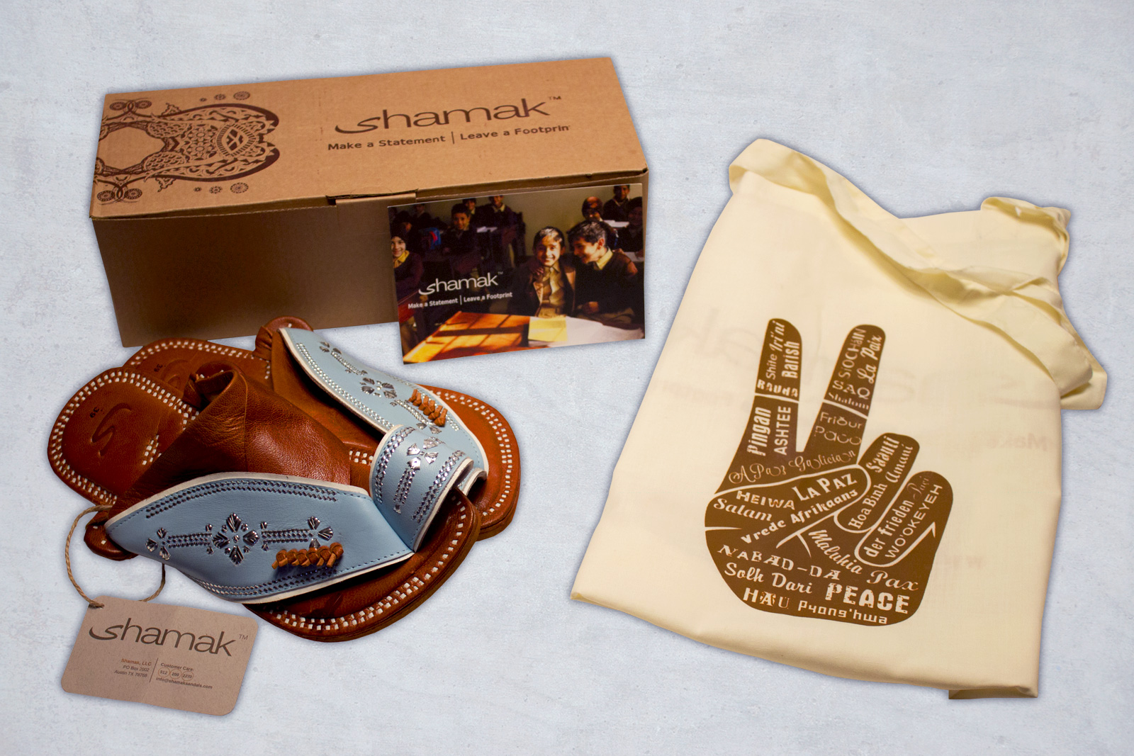 A lifestyle brand of adventurous, fashion-forward leather sandals. Shamak, which means “to make peace,” is a for-profit company whose primary social mission is to help underprivileged children around the world have access to an education.